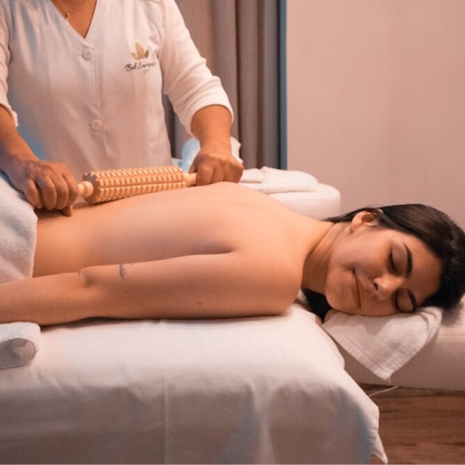 For a massage, it’s typical to undress to your comfort level. Many people choose to undress completely or leave on their underwear. You’ll be covered with a sheet or towel throughout the massage, with only the area being worked on exposed at any time. This is done to ensure your comfort and privacy. If you prefer, you can also wear loose clothing or keep more clothing on—just let your therapist know what makes you feel most comfortable.